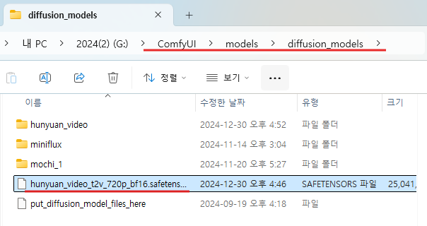 (ComfyUI 폴더) → (models 폴더) → (diffusion_models 폴더)