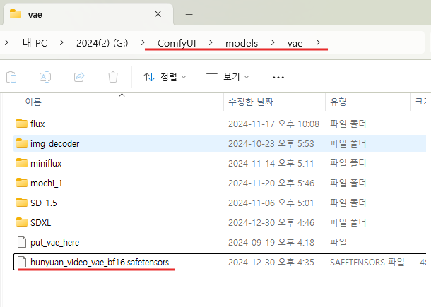 (ComfyUI 폴더) → (models 폴더) → (vae 폴더)