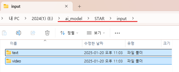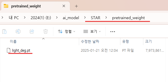 cd E:\ai_model\STAR # 깃허브에서 다운받은 폴더 경로