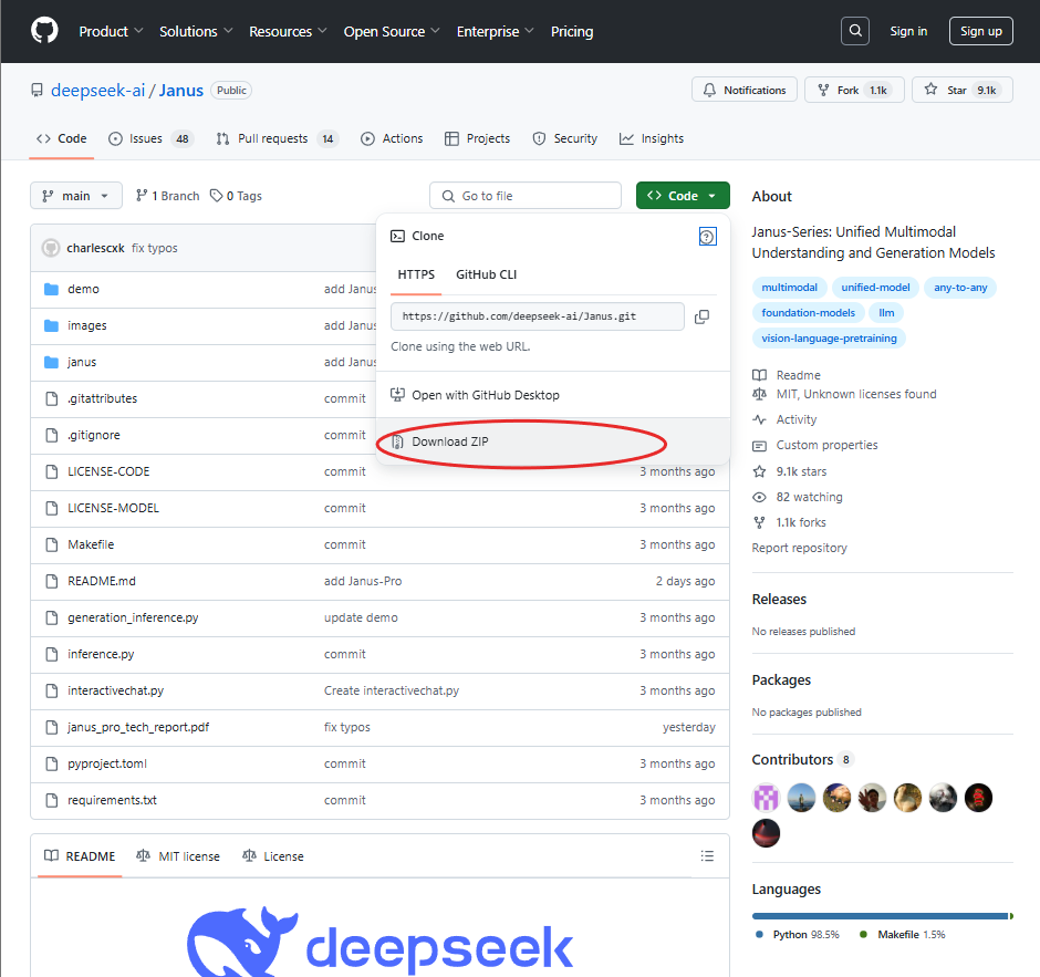 아래 Janus 깃허브 페이지에서 코드를 다운받습니다.