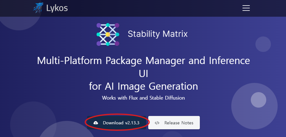 Stability Matrix는 Lykos AI에서 제공하는 설치 프로그램을 통해 한 번에 쉽게 설치할 수 있습니다. 아래 공식 사이트에서 설치 파일(StabilityMatrix.exe)을 다운로드한 후 실행하면 됩니다.