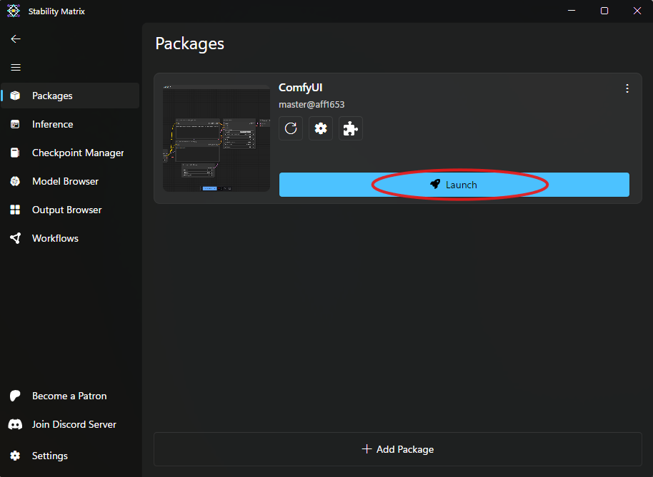 실행된 Stability Matrix Packages에서 ComfyUI를 실행합니다.
