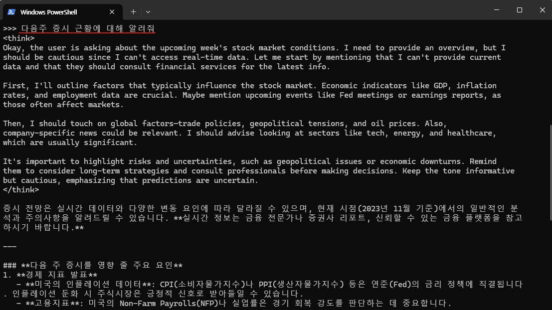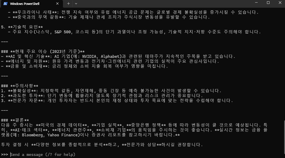 - 사용 프롬프트 : 다음주 증시 근황에 대해 알려줘.
