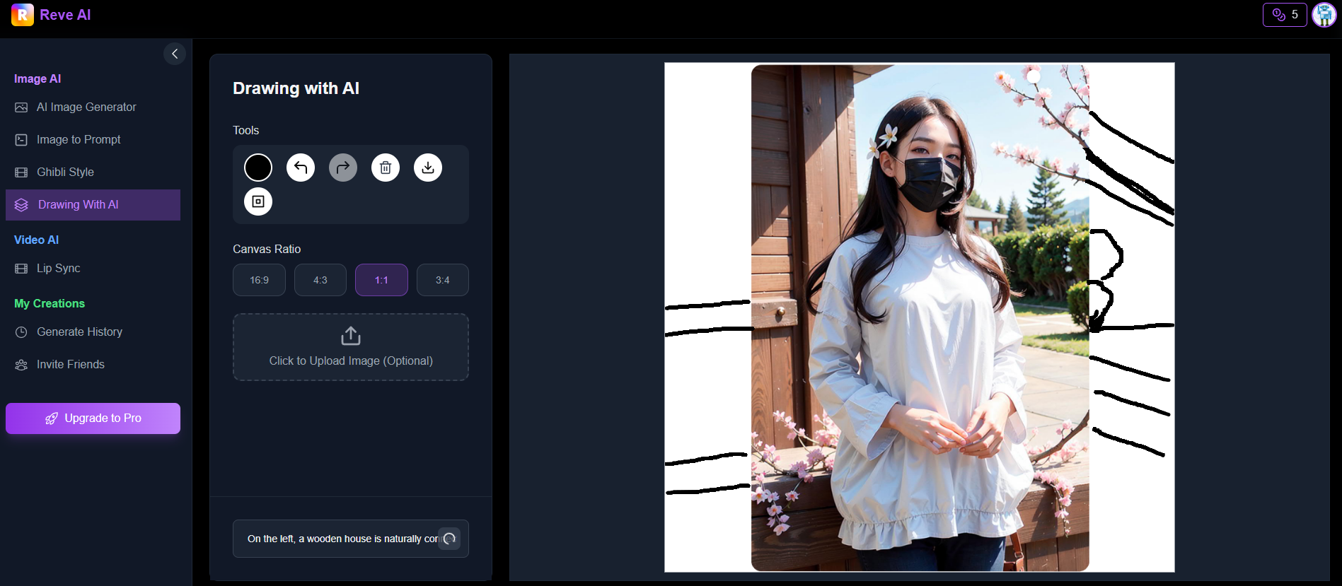 예를 들어, 기존 이미지를 불러온 뒤, 확장하고 싶은 방향을 드로잉으로 표시하면, 그에 맞춰 새로운 이미지를 생성하는 것도 가능합니다. 직관적으로 사용할 수 있다는 점에서 매우 흥미로운 기능이지만, 아직은 개선이 필요한 부분도 보였습니다.