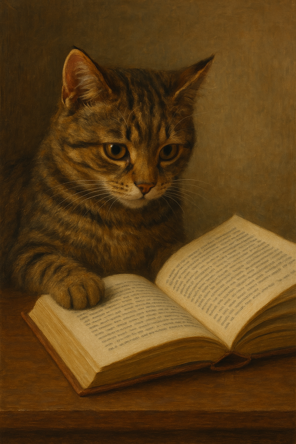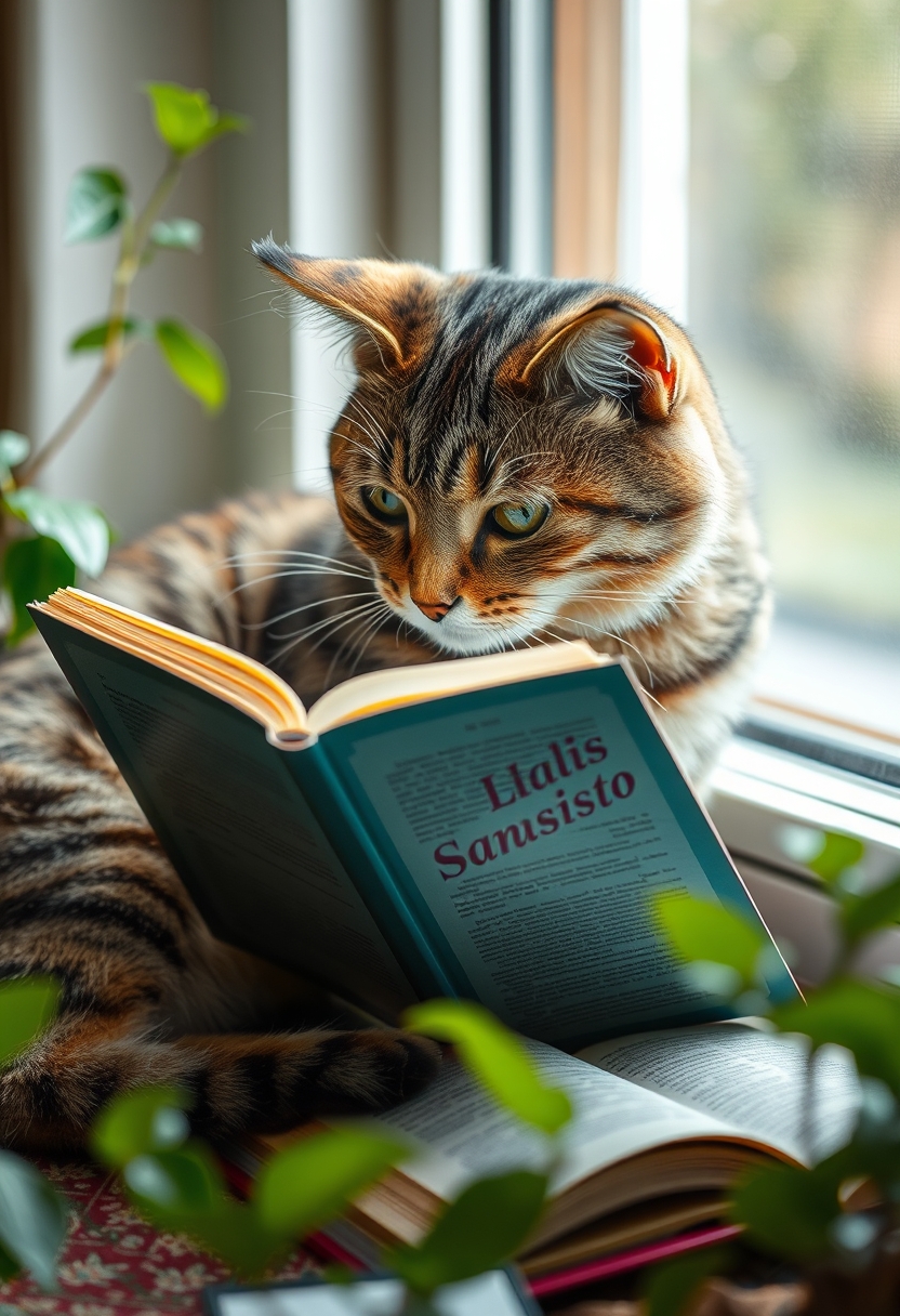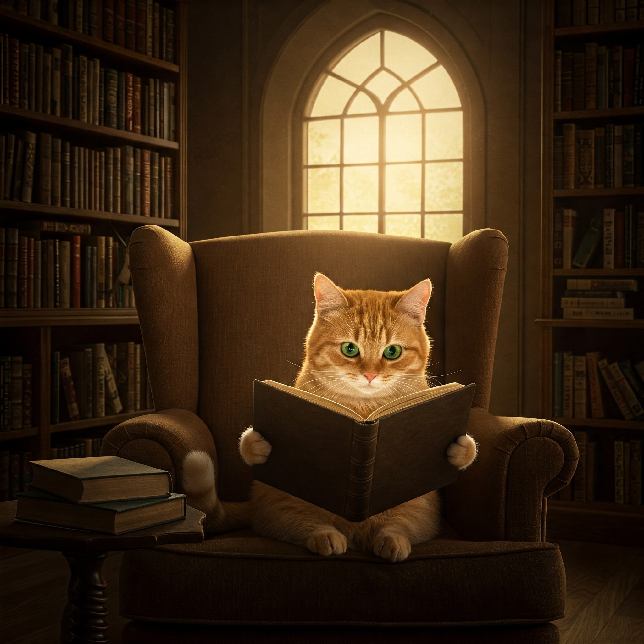- 생성 프롬프트 : A scene where a cat is reading a book
