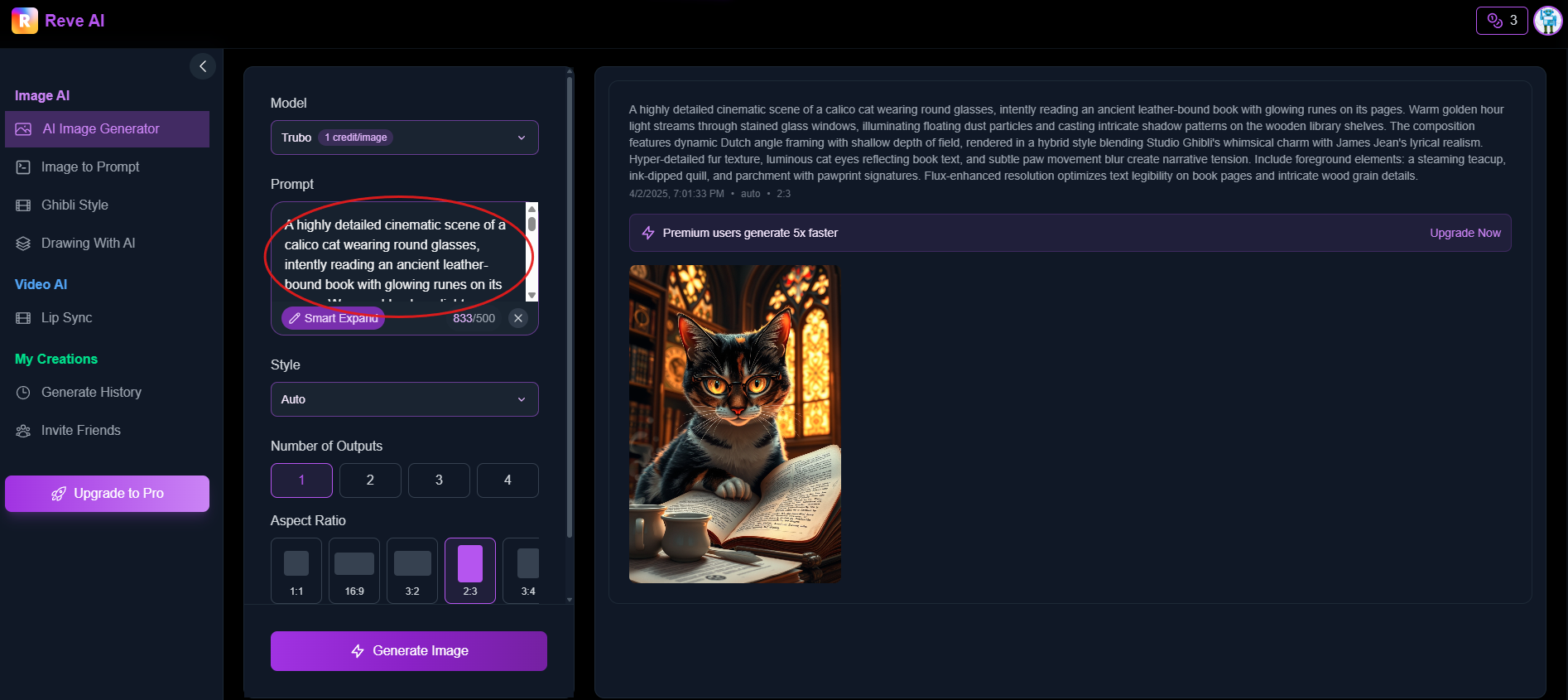 Reve AI를 사용하면서 가장 인상 깊었던 점은, 이 플랫폼이 이미지 생성에 특화되어 있다는 점이었습니다. 사용자가 어떤 기능을 필요로 할지 미리 고려한 듯, 다양한 편의 기능들이 잘 갖춰져 있습니다.