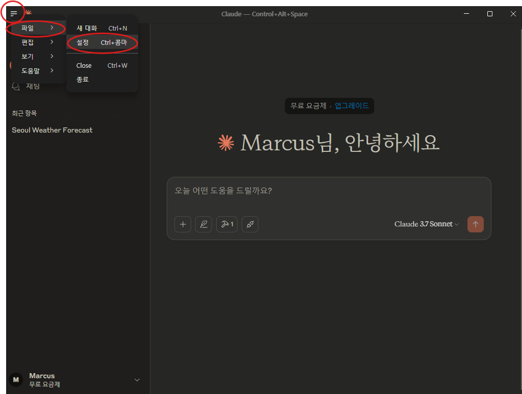 이제 MCP 서버 코드를 작성했으면, 데스크톱 Claude에서 해당 코드의 위치를 알려줘야합니다. 아래의 절차에 따라 진행해줍니다.