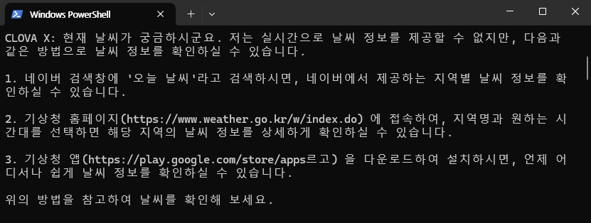 print("CLOVA X에 오신 것을 환영합니다. 'exit'을 입력하면 종료됩니다.\n")