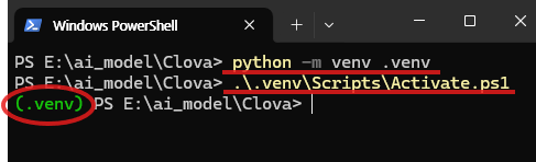 가상 환경이 정상적으로 활성화되면 명령어 입력창 왼쪽에 (.venv) 표시가 나타납니다. 이 표시가 보이면 가상 환경이 성공적으로 설정된 것입니다.
