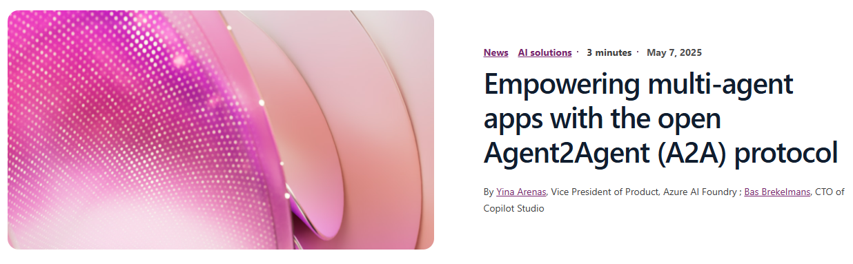 마이크로소프트는 이번 발표에서 A2A와 함께 MCP(Model Context Protocol)도 중요한 역할로 언급하며, AI 에이전트들이 어떻게 연결되고 협력할 수 있을지를 보여주는 ‘에이전트 중심 미래’를 향한 비전을 다시 한번 강조했습니다.