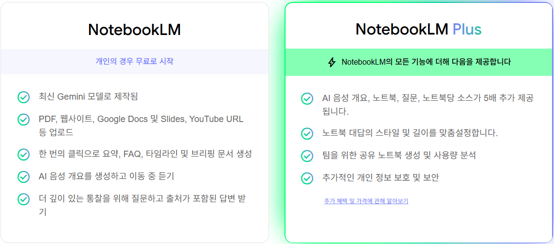 지금부터 NotebookLM의 주요 기능과 요금제 차이, 활용 방법 등을 하나씩 살펴보겠습니다.