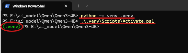 아래 명령어를 통해 Qwen3-4B 모델을 실행해줍니다.