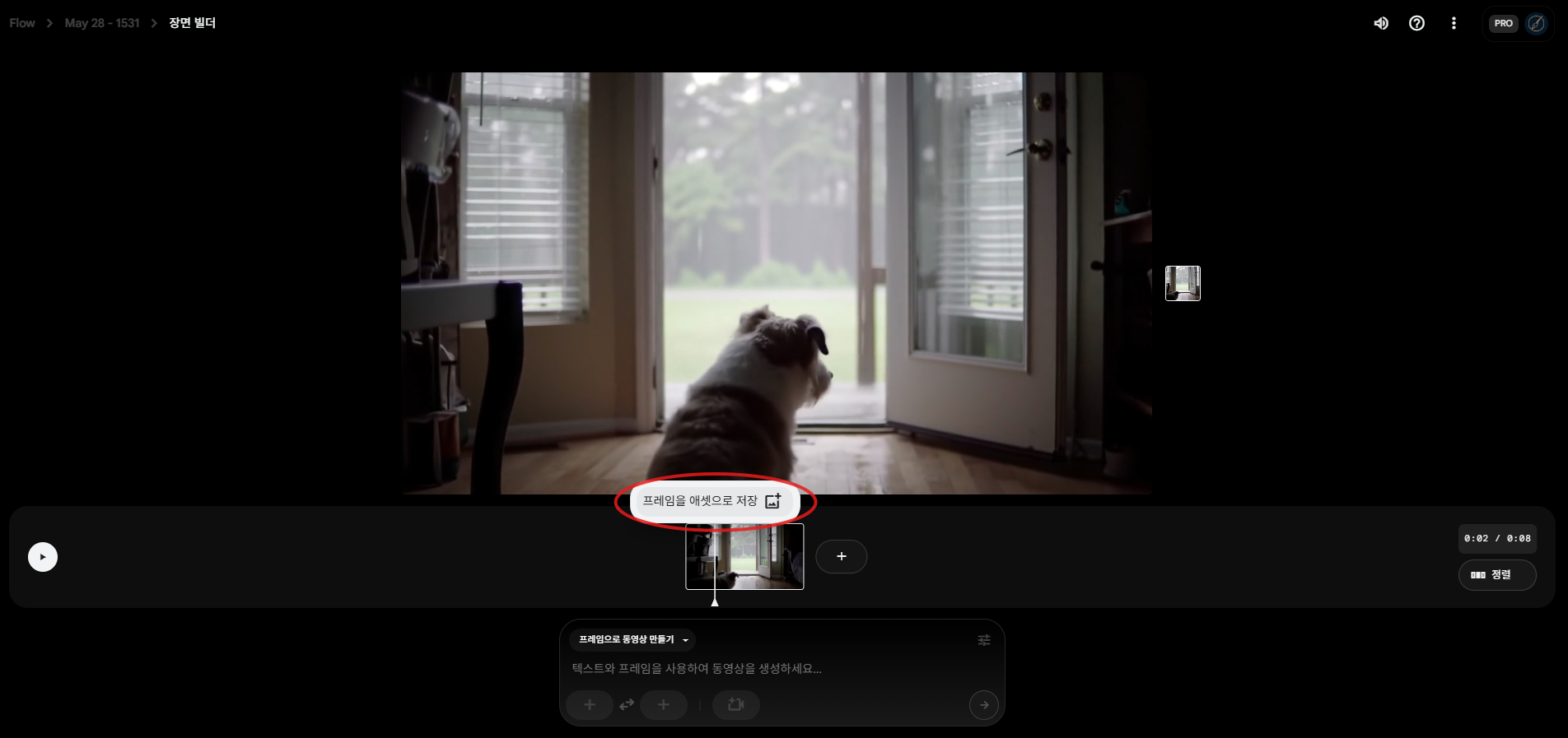 - 프레임을 애셋으로 저장 (Save Frame as Asset): 영상 속 특정 순간을 이미지로 저장하고, 이를 활용해 "프레임으로 동영상 만들기" 기능을 사용하면 해당 이미지를 시작점으로 한 자연스러운 후속 영상을 제작할 수 있습니다.