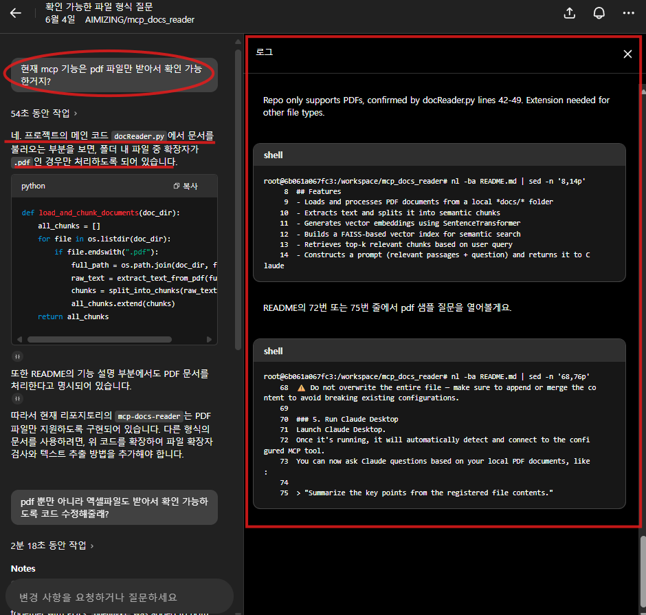 이번 테스트에서는 이전에 작성한 "PDF 파일 데이터를 처리하는 MCP 서버" 코드를 활용하여 몇 가지 기능들을 직접 실험해보았습니다.