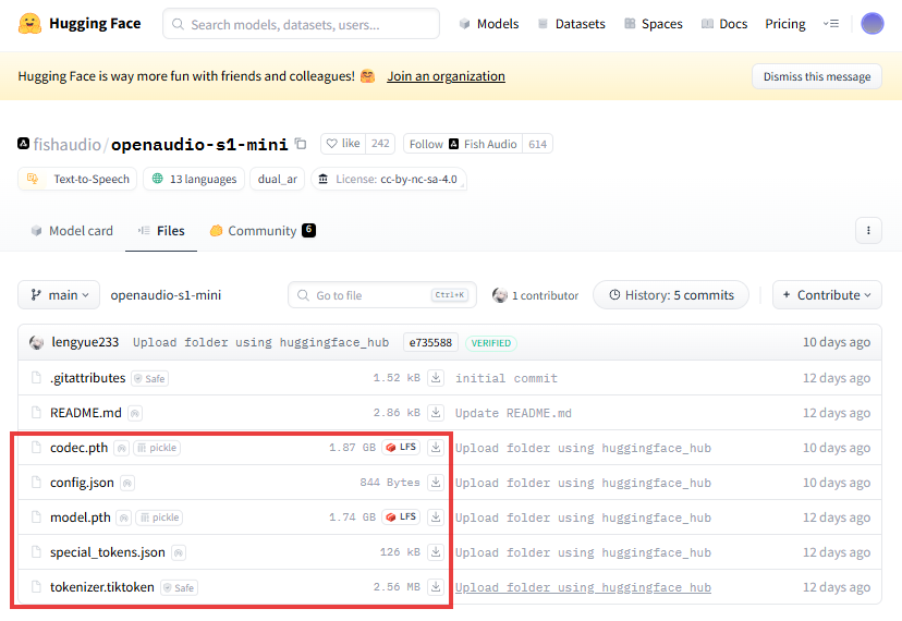 - OpenAudio S1-mini (모델 파일) 허깅페이스 : https://huggingface.co/fishaudio/openaudio-s1-mini/tree/main