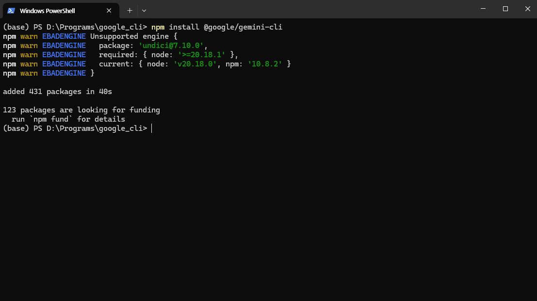 npm install @google/gemini-cli # 현재 디렉토리에 로컬 설치