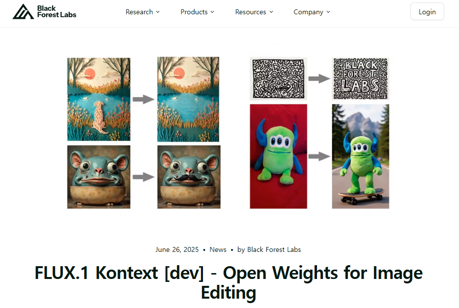 - Black Forest Labs 공식 뉴스 : https://bfl.ai/announcements/flux-1-kontext-dev