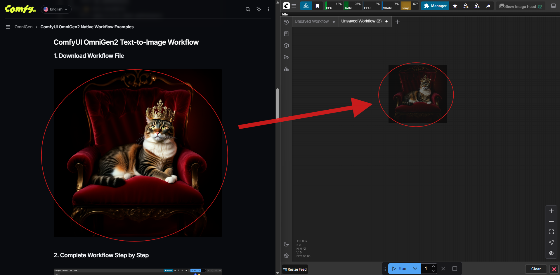 - ComfyUI OmniGen2 워크플로우 : https://docs.comfy.org/tutorials/image/omnigen/omnigen2#1-download-workflow-file