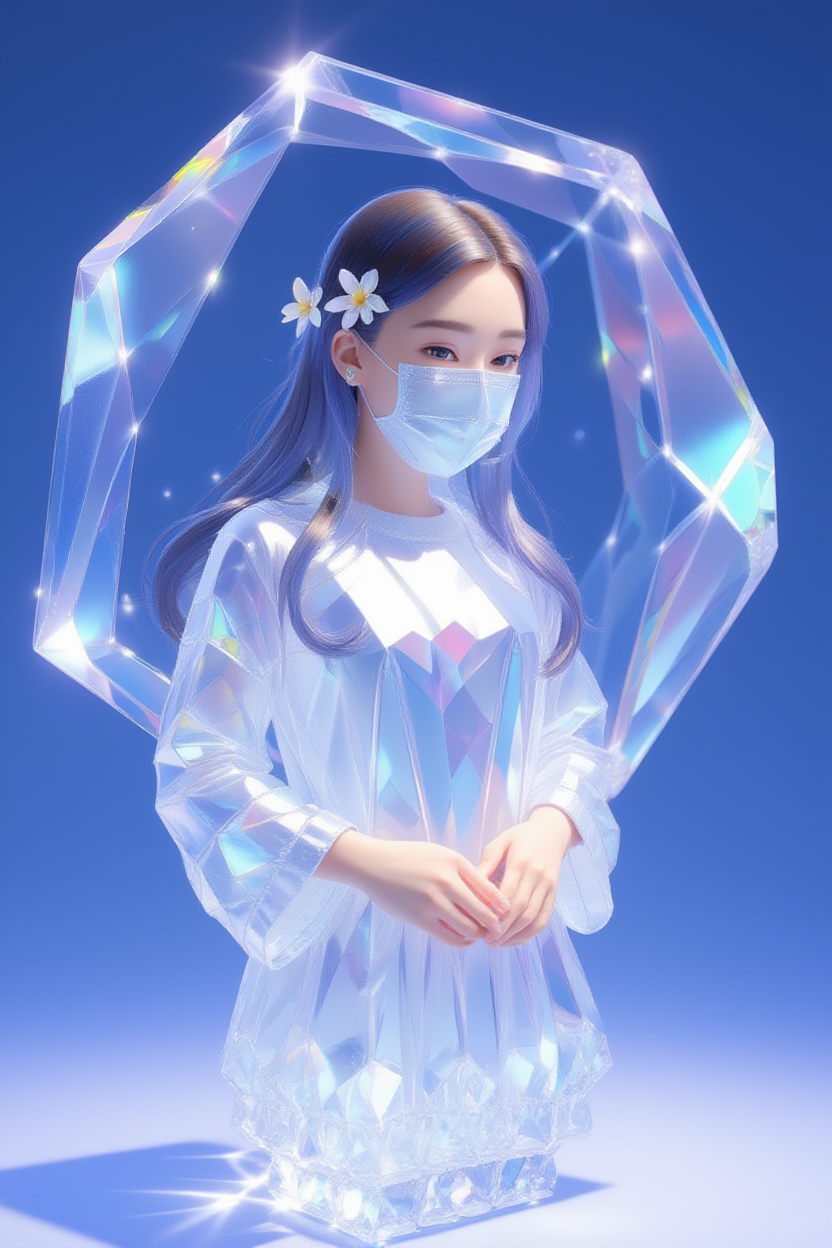 - 긍정 프롬프트 : Transform character into crystal material, transparent crystal texture, sparkling surface, prismatic light effects, magical appearance, elegant translucent look