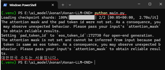 이번 포스팅에서는 Konan-LLM-OND 모델을 로컬 환경에서 직접 실행해보고, 그 성능과 활용 가능성에 대해 살펴보고자 합니다.