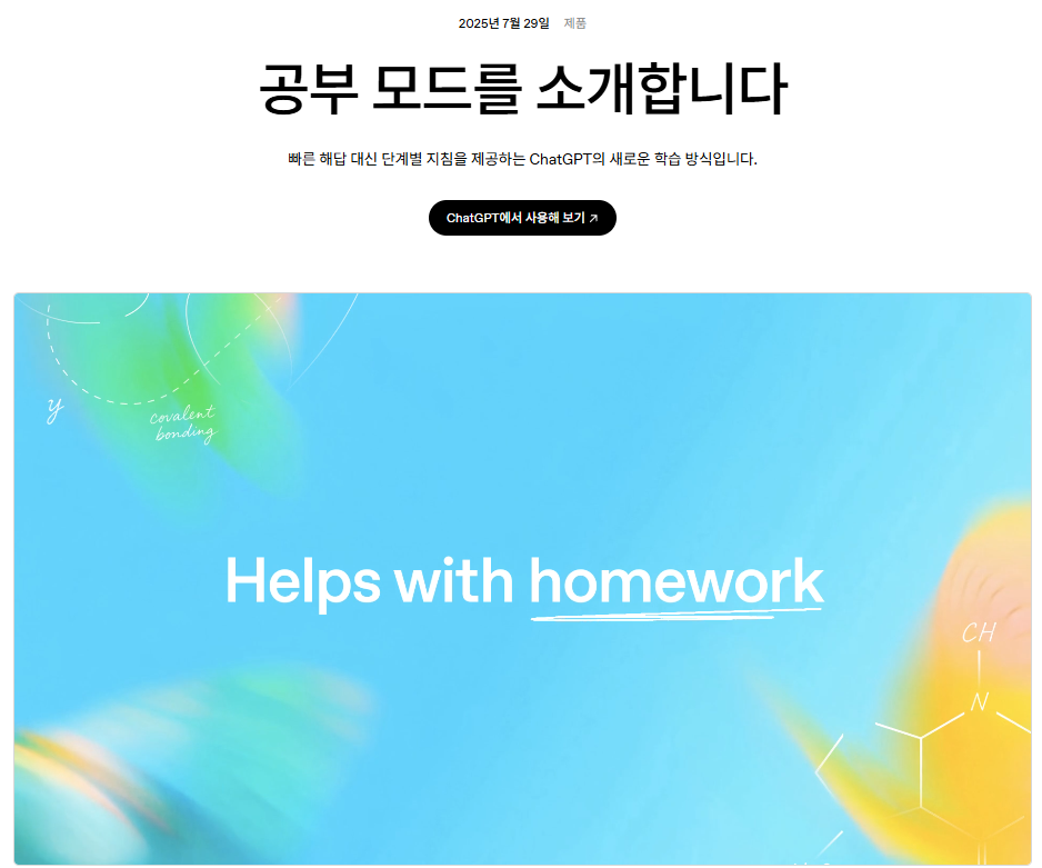 - ChatGPT 공부 모드 소개 페이지 : https://openai.com/ko-KR/index/chatgpt-study-mode/