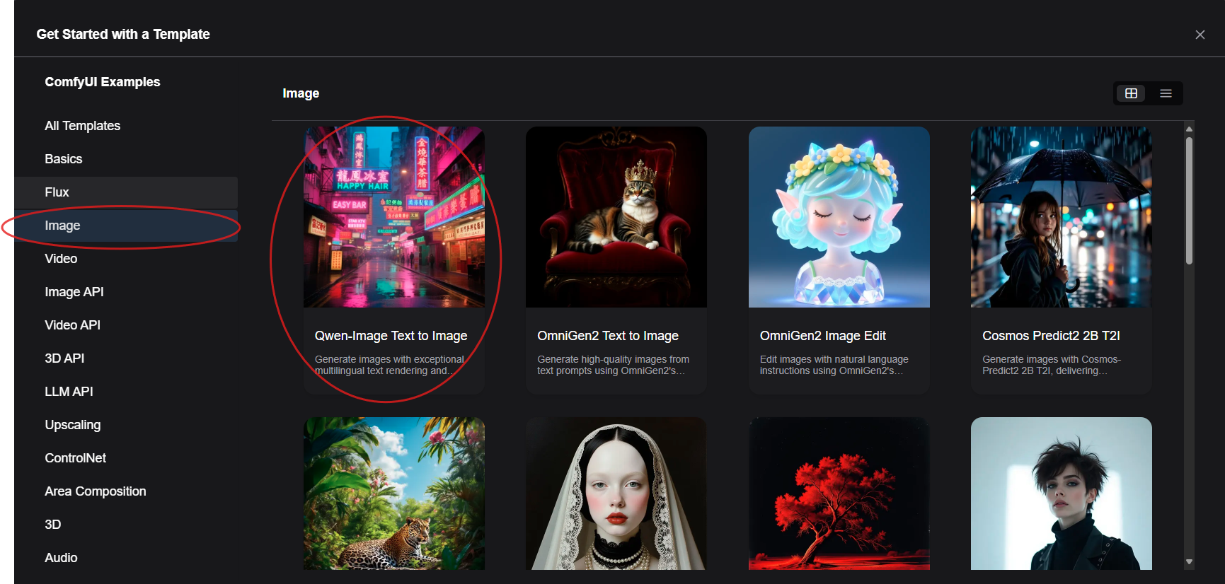 - "Image" 항목에서 " Qwen-Image Generation"을 클릭