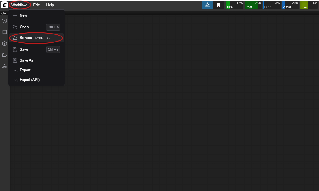 최신 ComfyUI에서는 웹 UI 내에서 워크플로우를 간편하게 불러올 수 있습니다.