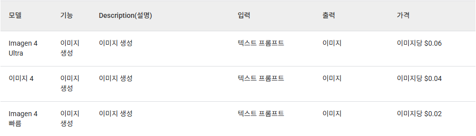 개발자가 Gemini API / Vertex AI를 통해 Imagen 4를 직접 호출할 경우, 이미지당 과금 방식이 적용됩니다.