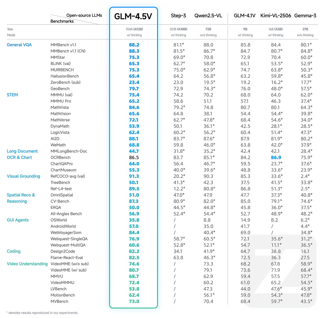 아래는 GLM-4.5V의 벤치마크 성능을 비교한 이미지입니다.
