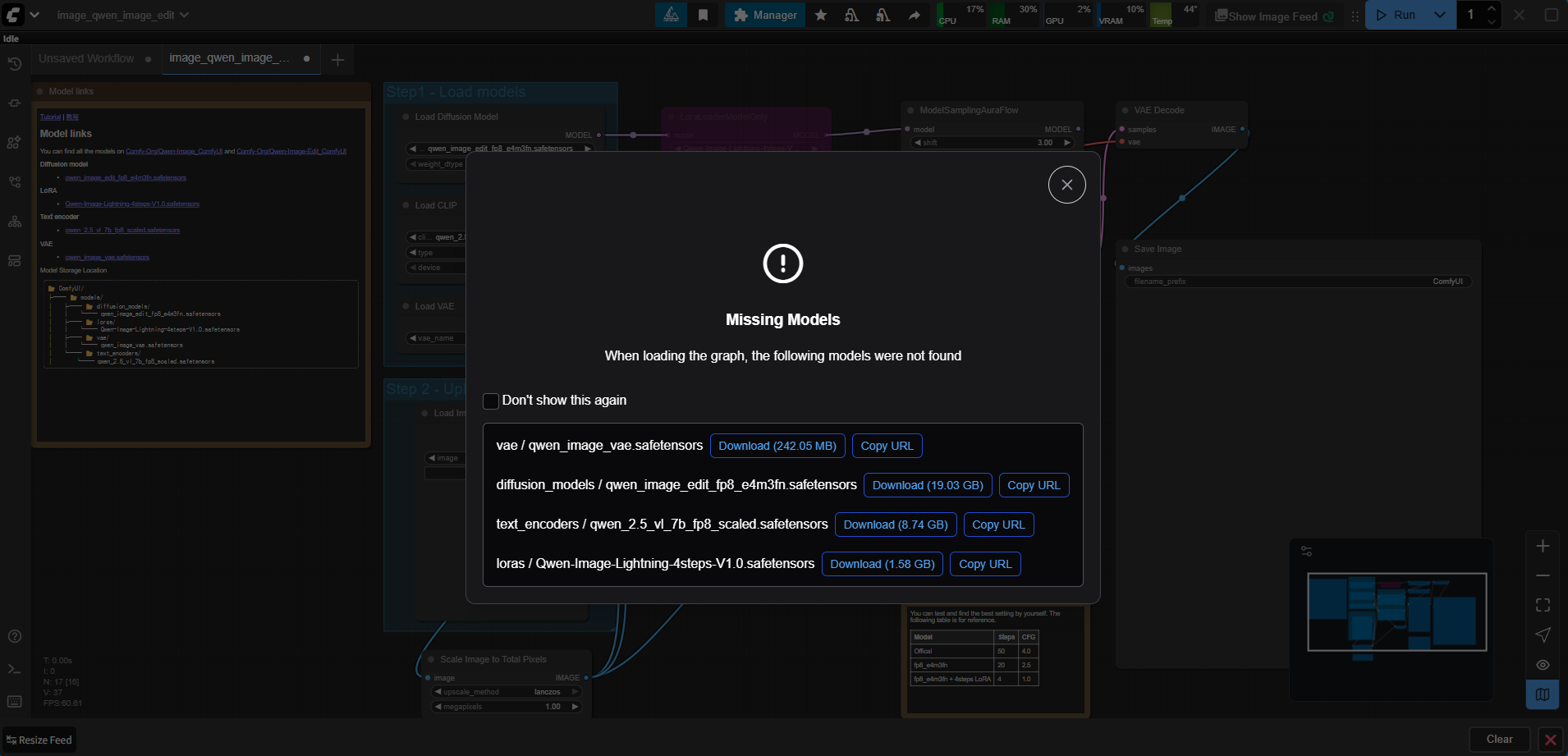 3. Workflow 및 Qwen-Image-Edit 모델 다운로드