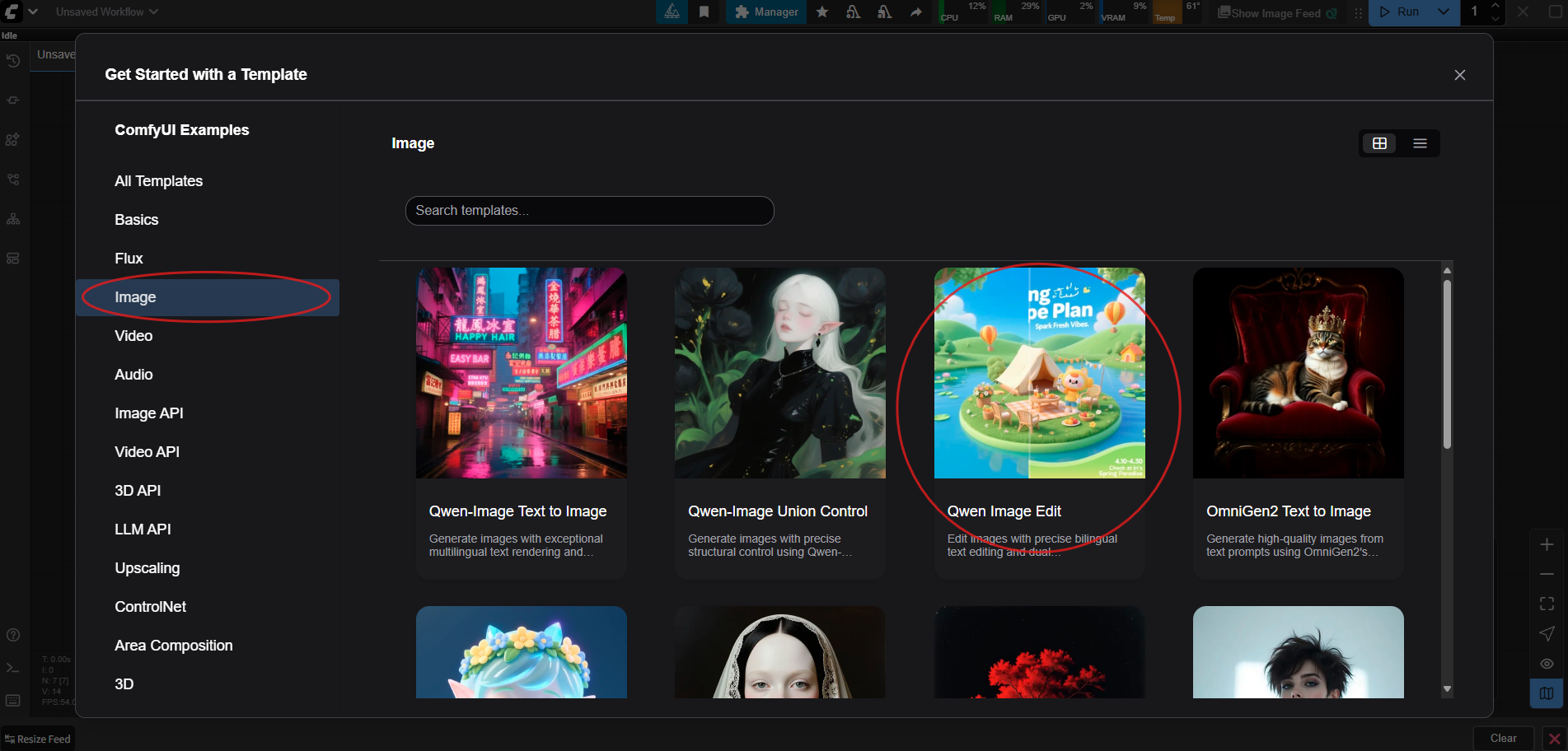 - "Image" 항목에서 " Qwen Image Edit" 클릭