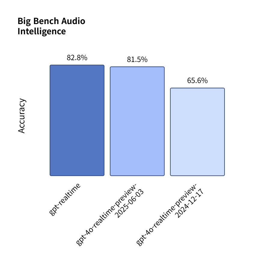 - 음성 이해력(Big Bench Audio): 82.8%로 대폭 상승