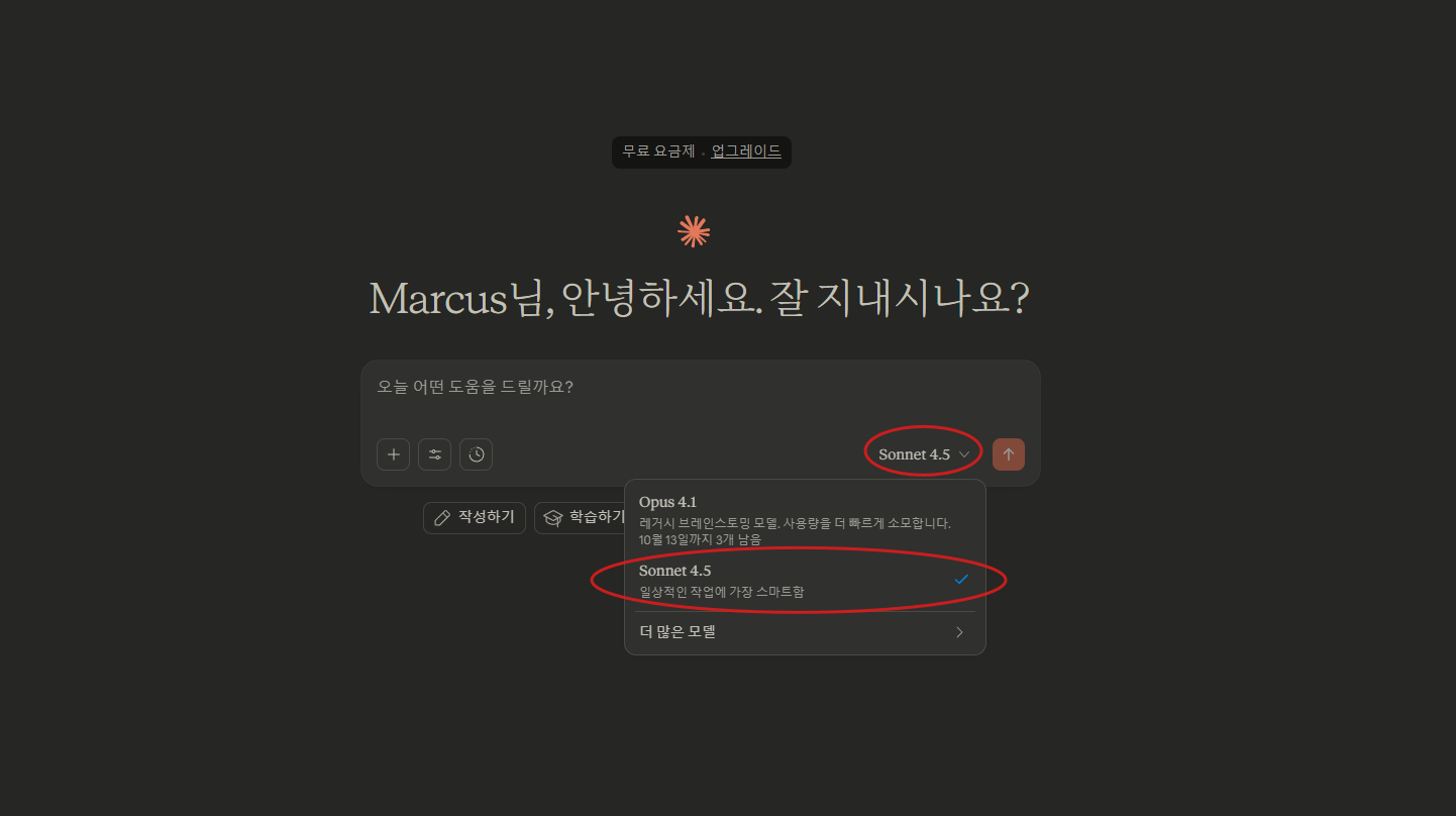 로그인 후 프롬프트 입력창에서 “Claude Sonnet 4.5” 모델을 선택하고 원하는 질문을 입력하면, 곧바로 응답을 확인할 수 있습니다. 간단한 질의부터 복잡한 추론 문제까지 실시간으로 테스트할 수 있으며, 최근 Claude 시리즈는 여러 벤치마크 평가에서 높은 성능을 기록하고 있습니다. 직접 사용해보시면 그 우수한 성능을 체감하실 수 있을 것입니다.