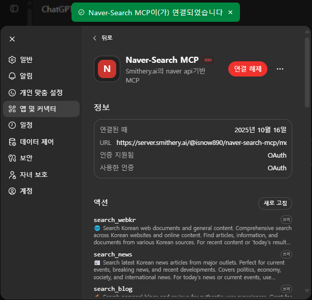 ChatGPT를 자주 사용하신다면, 직접 MCP를 적용하여 사용해보시기를 바랍니다.