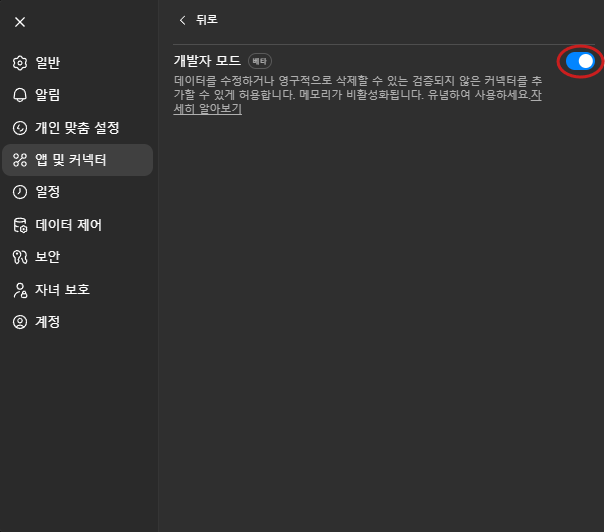 - 마지막으로 ‘개발자 모드(Developer Mode)’를 활성화하면 준비가 완료됩니다.