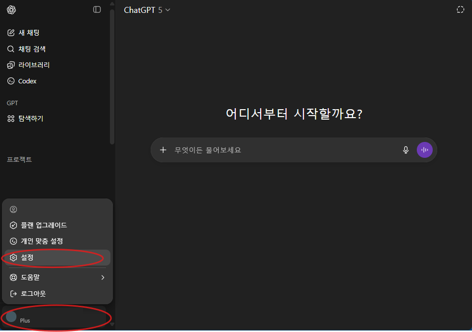 다음 단계는 ChatGPT에서 MCP와 연동하기 위한 과정입니다. 웹 버전 ChatGPT에 접속한 뒤, 설정(Settings) 페이지로 이동합니다.
