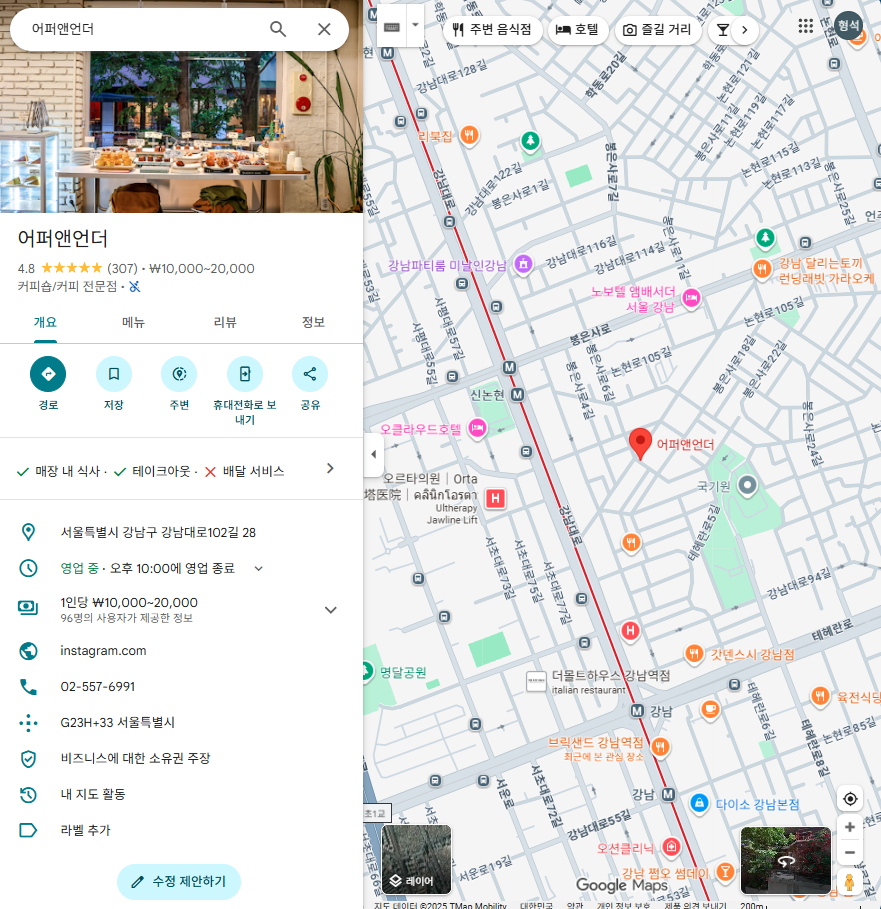 contents="서울 강남역 근처에서 디저트 카페 추천해줘.", # 프롬프트 입력