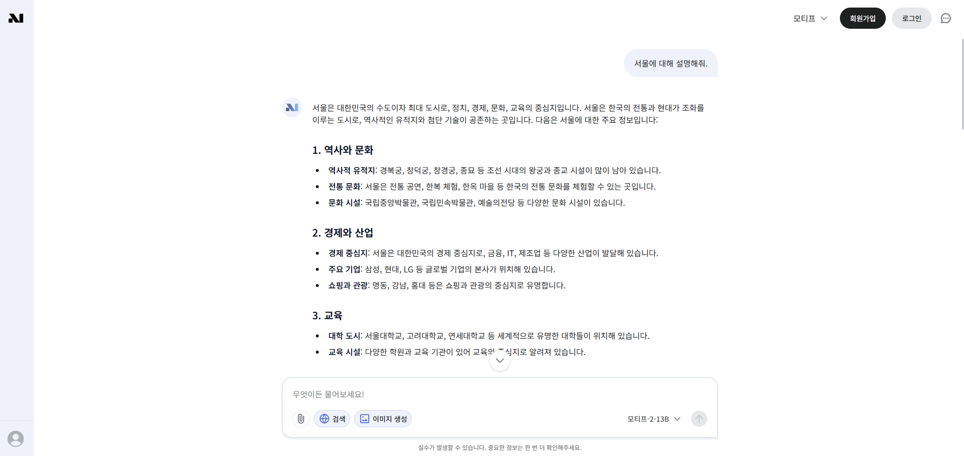 query = "서울에 대해 간단히 설명해줘. 대상은 외국인 관광객이야." # 사용자 환경에 맞게 수정