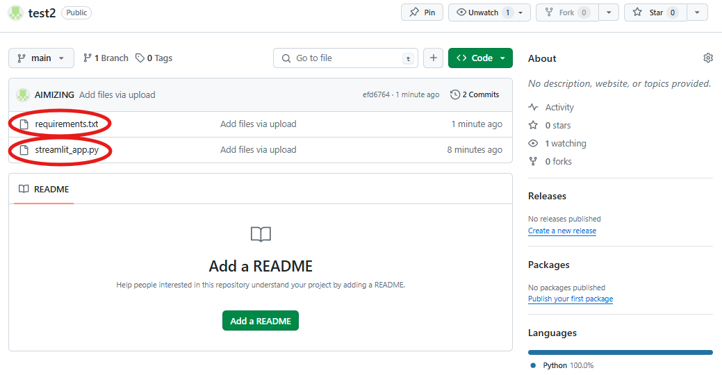 이 파일을 업로드하는 이유는 Streamlit Community Cloud에서 해당 코드를 작동시키기 위해서입니다. Streamlit Community Cloud에서 더 자세히 설명하겠습니다.