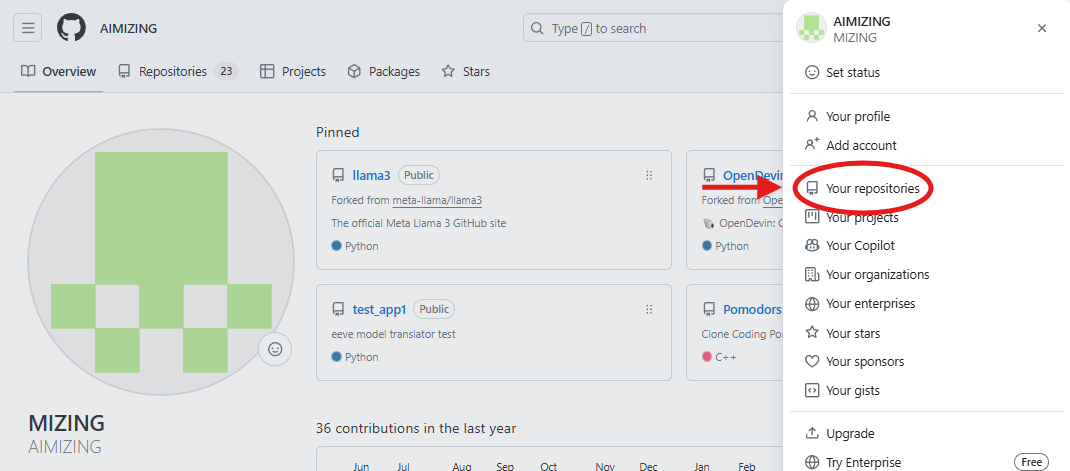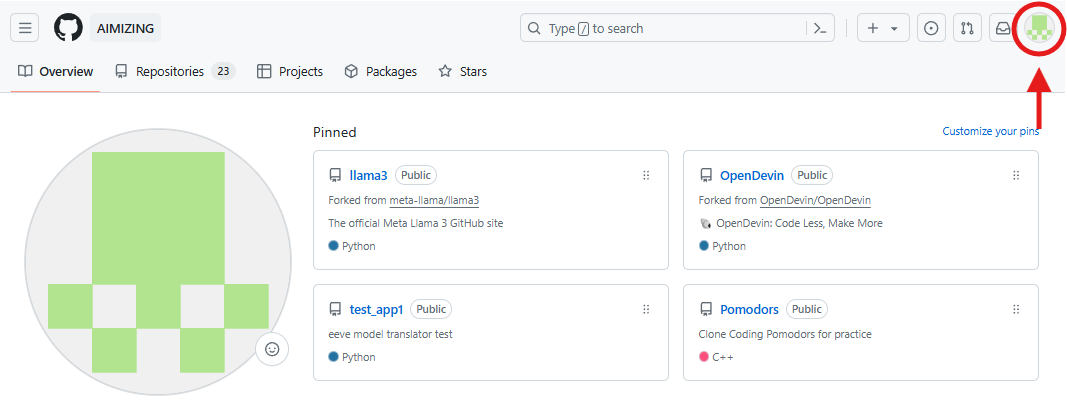 - 로그인 후 우측 상단에서 자신의 프로필을 클릭합니다.