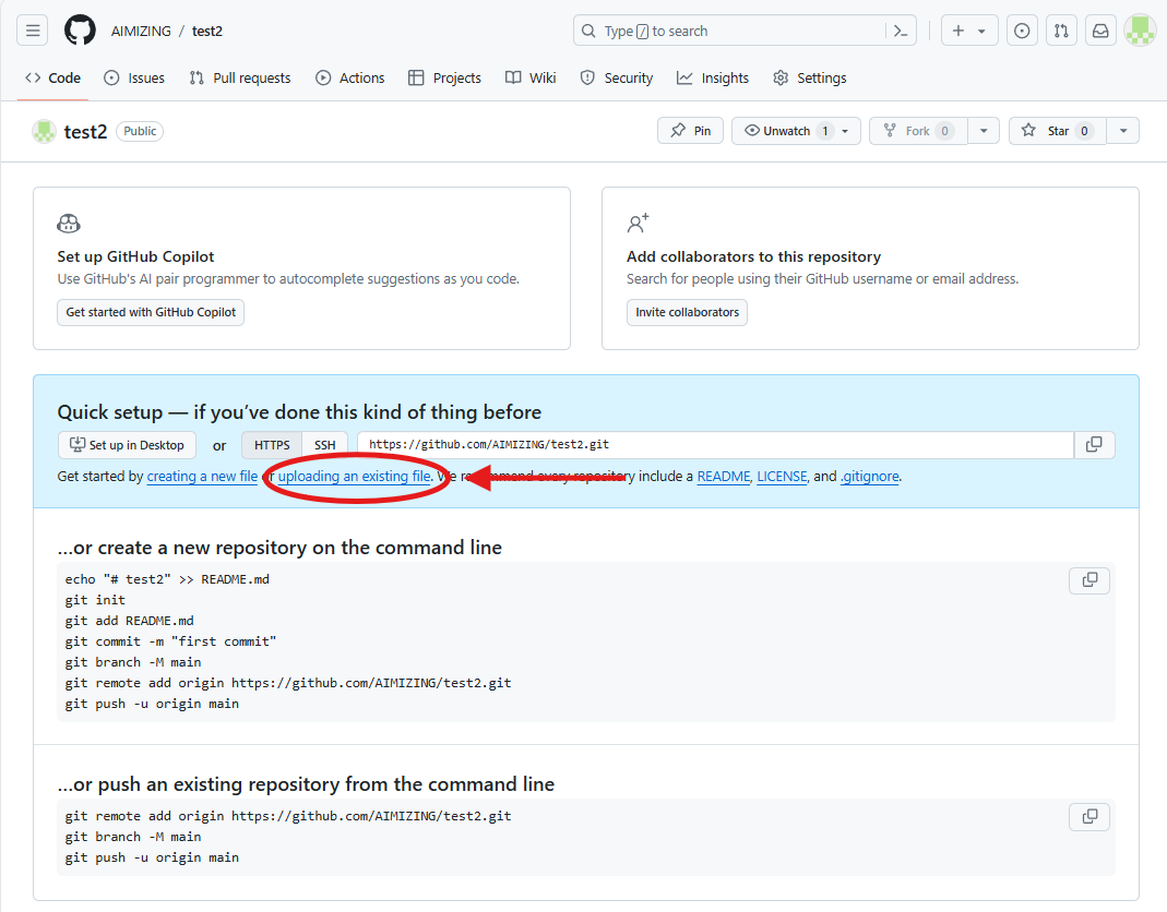 모든 파일을 업로드한 후, repository에는 두 개의 파일이 업로드된 것을 확인할 수 있습니다.