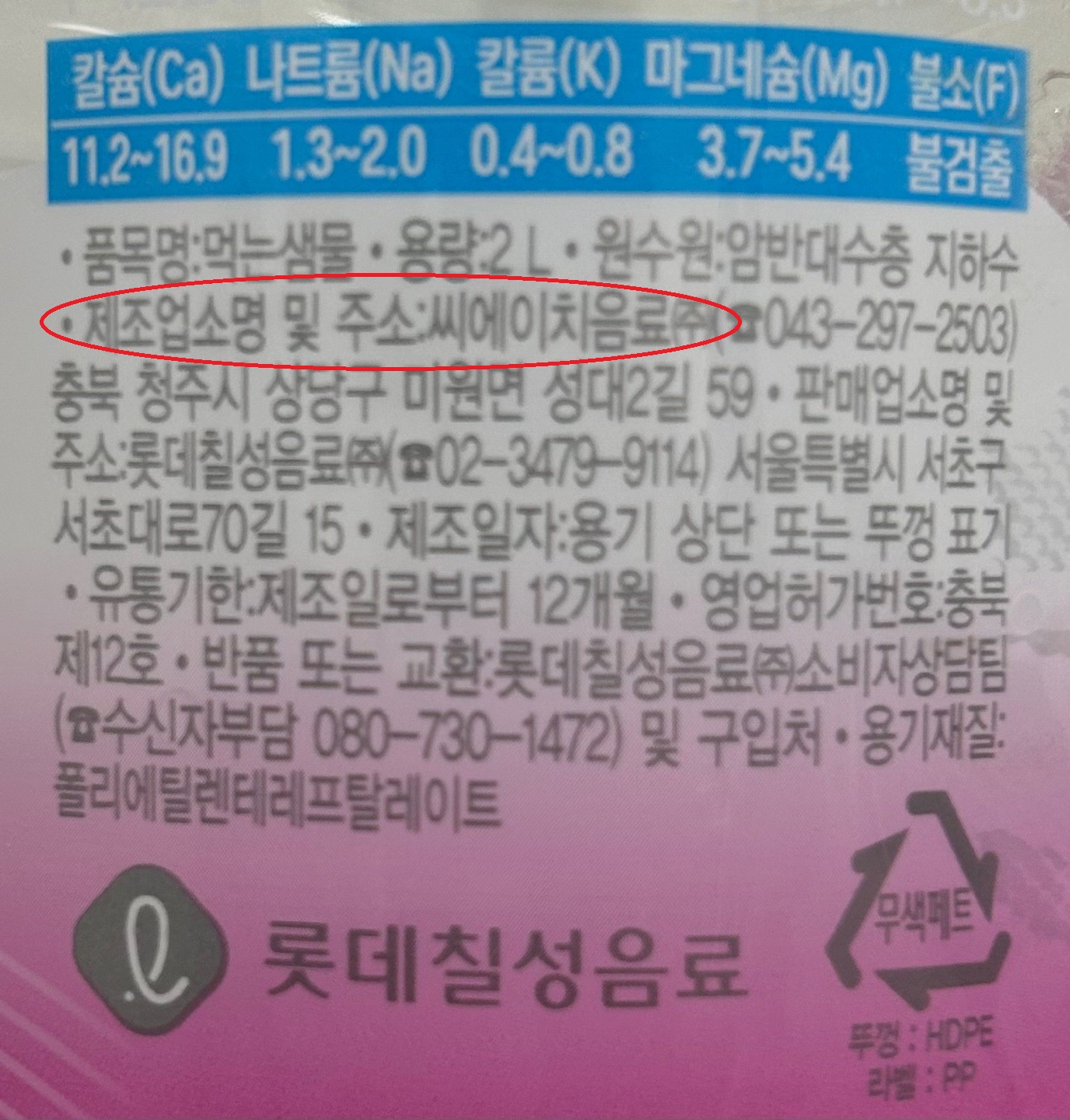 위 사진을 보면 아이시스의 제조업체는 "씨에이치음료(주)"이고, 유통업체(판매업소)는 "롯데칠성음료(주)"입니다. 소비자들도 이러한 정보를 숙지하여, 신뢰할 수 있는 생수 제품을 선택하는 것이 중요합니다. 생수는 우리의 건강과 직결되는 만큼, 안전하고 신뢰할 수 있는 제품을 선택하는 것이 중요합니다. 앞으로도 지속적인 모니터링과 관리가 필요하며, 소비자들은 이러한 정보를 기반으로 신중한 선택을 해야 할 것입니다.