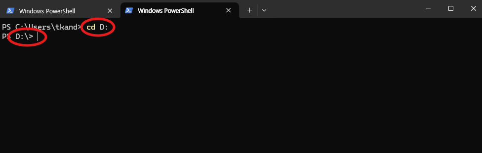 ※ Windows PowerShell을 실행하면 처음 나타나는 경로는 아래와 같습니다. 여기서 위의 코드를 입력하게 되면 해당 경로에 Stable Duffusion이 설치되게 됩니다. 다른 경로에 설치하시고 싶으면 cd 명령어를 통해 바꿀 수 있습니다.