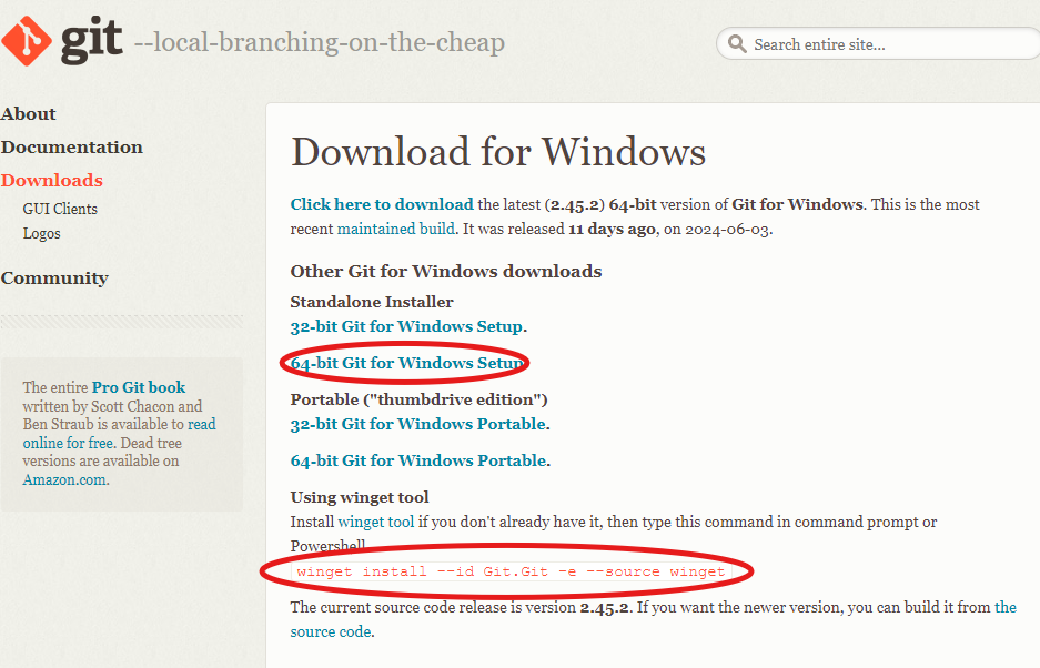 - git 2.45.2 버전 다운로드 (https://git-scm.com/download/win)