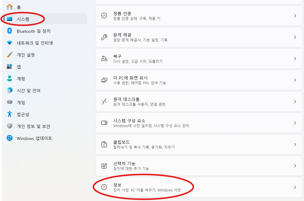 ※ 사용자의 설치 환경에 맞는 설치파일을 다운받으셔야 합니다. 현재 컴퓨터의 운영체제를 확인하고 싶으신 분들은 아래의 순서로 확인하실 수 있습니다.