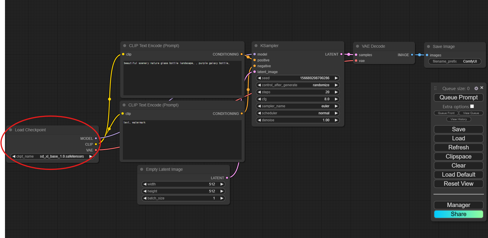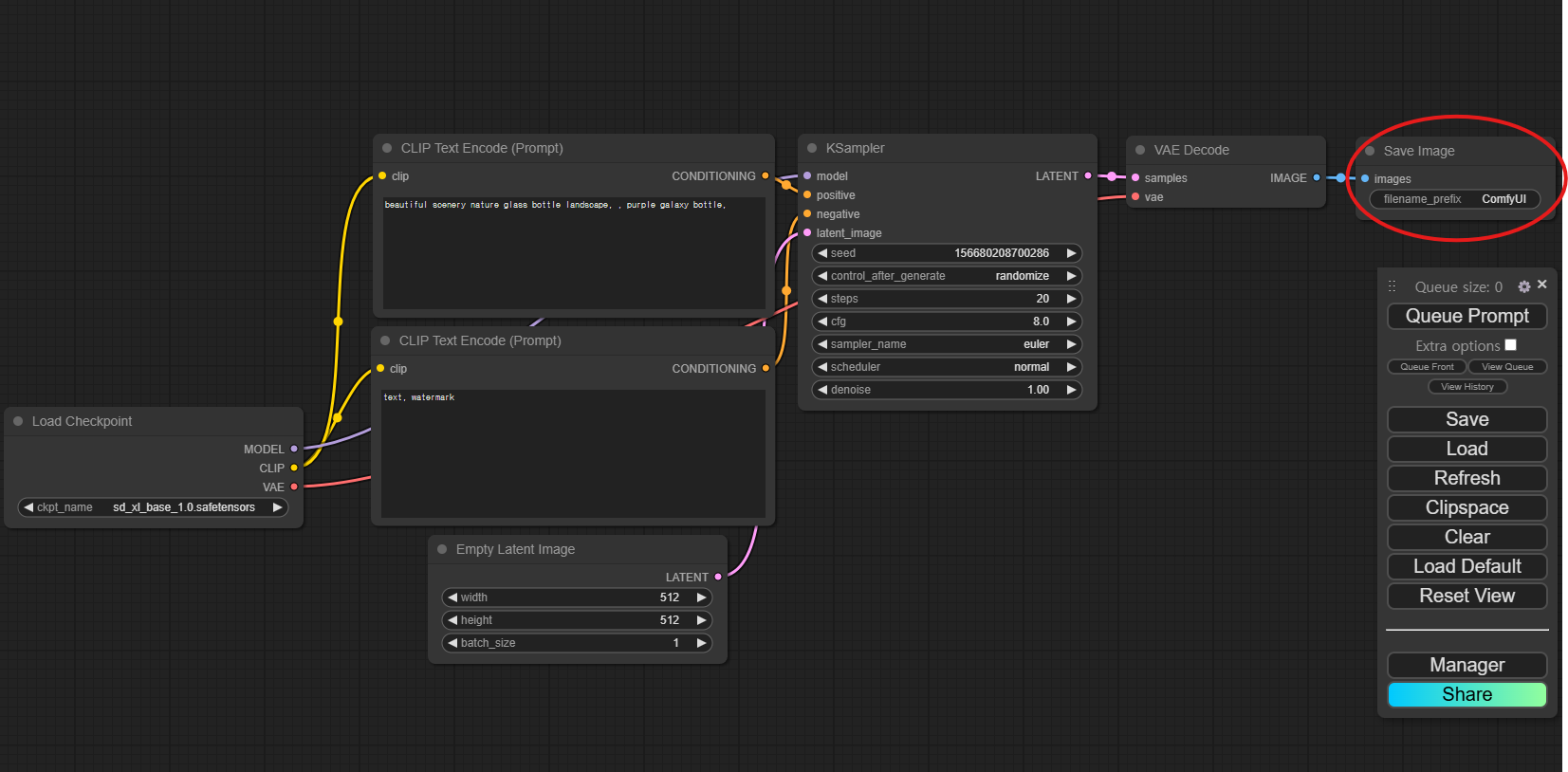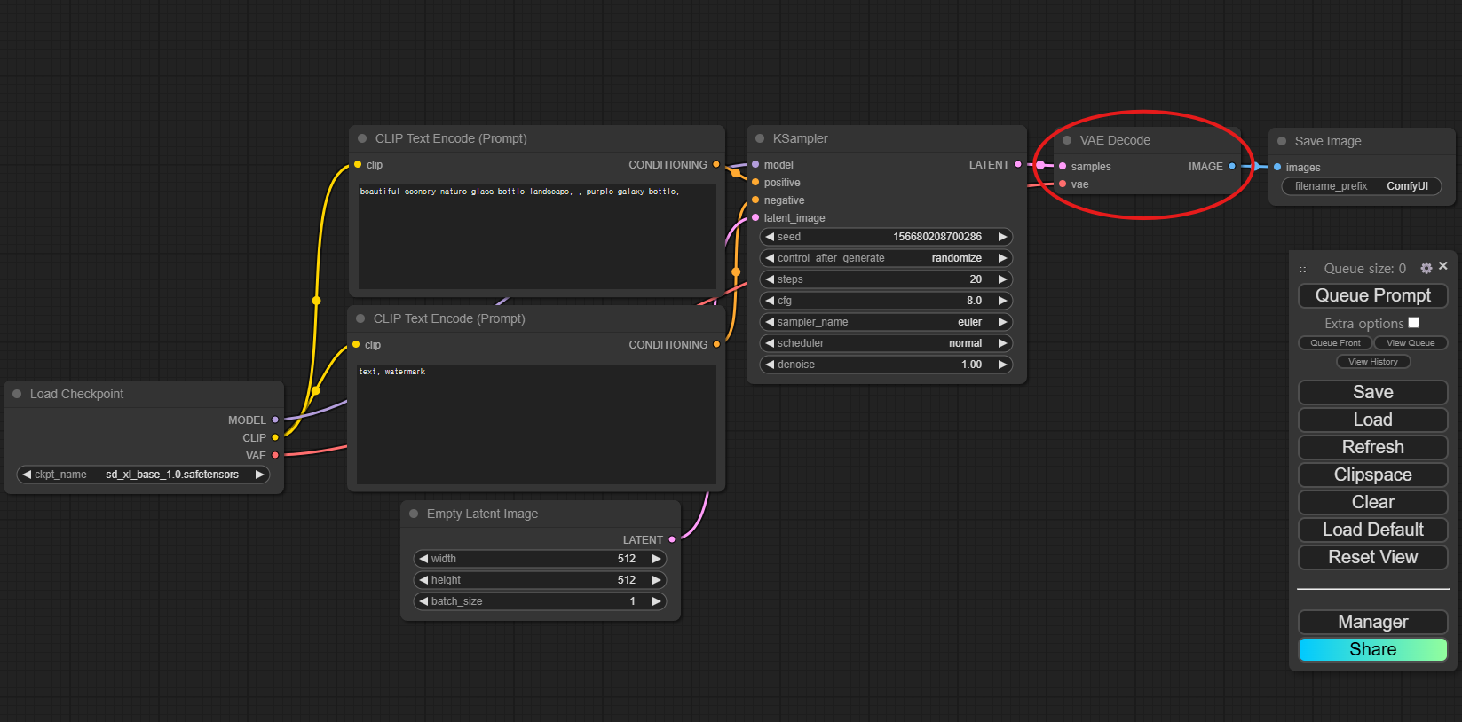 5) VAE Decode (아래 이미지의 빨간색 표시 참조)