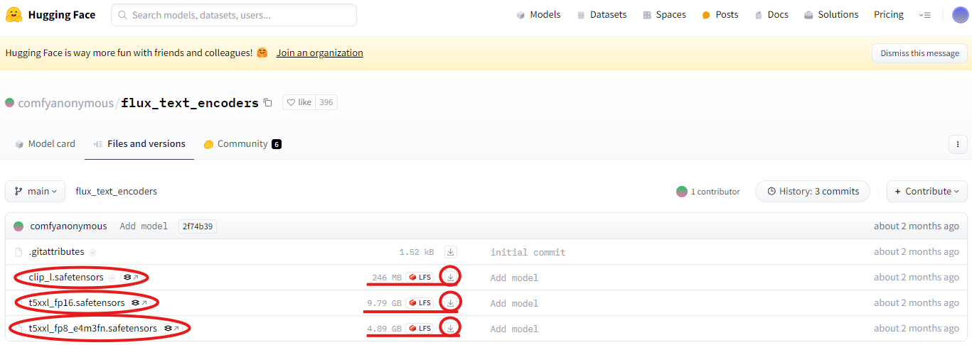 CLIP 모델도 마찬가지로 FLUX.1 모델에 맞는 CLIP 모델을 다운로드해야 합니다. 다운로드 링크는 아래와 같습니다.