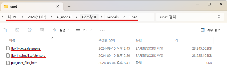 (ComfyUI 폴더) → (models 폴더) → (unet 폴더)