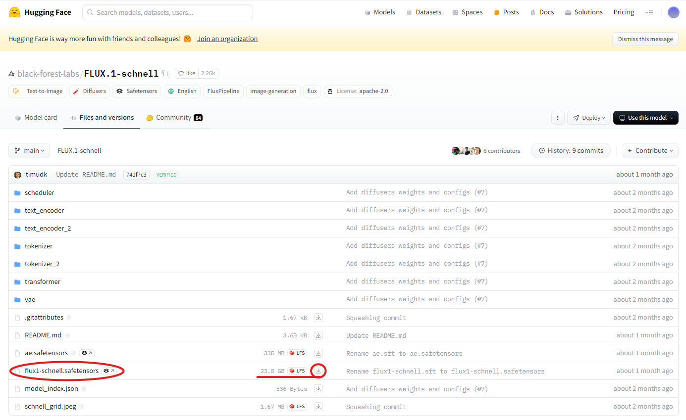 - FLUX.1-schnell 모델 : https://huggingface.co/black-forest-labs/FLUX.1-schnell/tree/main