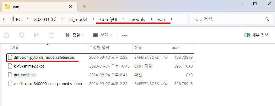 (ComfyUI 폴더) → (models 폴더) → (vae폴더)